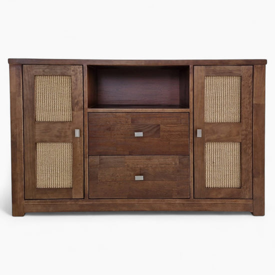 - Puertas: 2 Puertas de madera y sisal con tiradores metálicos